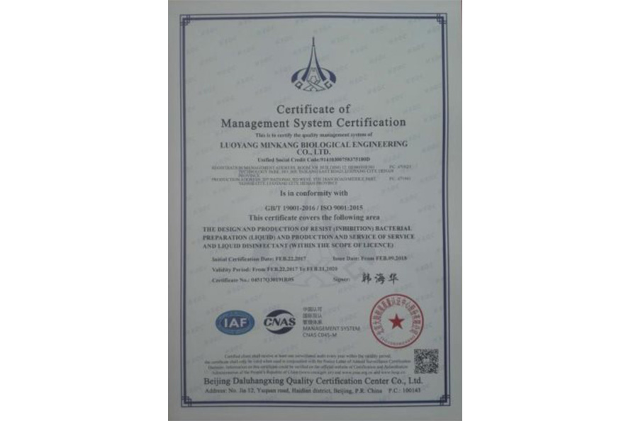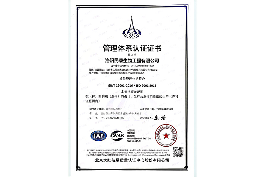 質(zhì)量管理體系證書(shū)