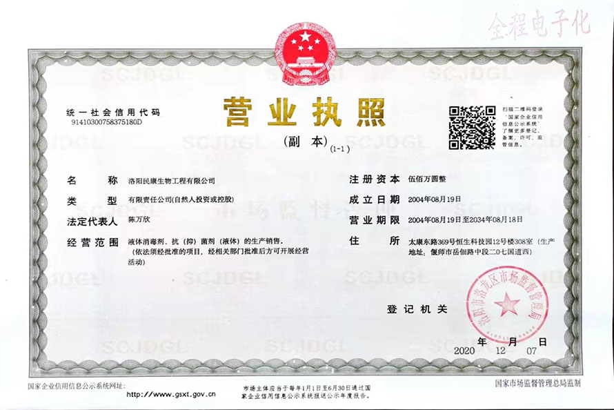 洛陽(yáng)民康生物工程有限公司營(yíng)業(yè)執(zhí)照