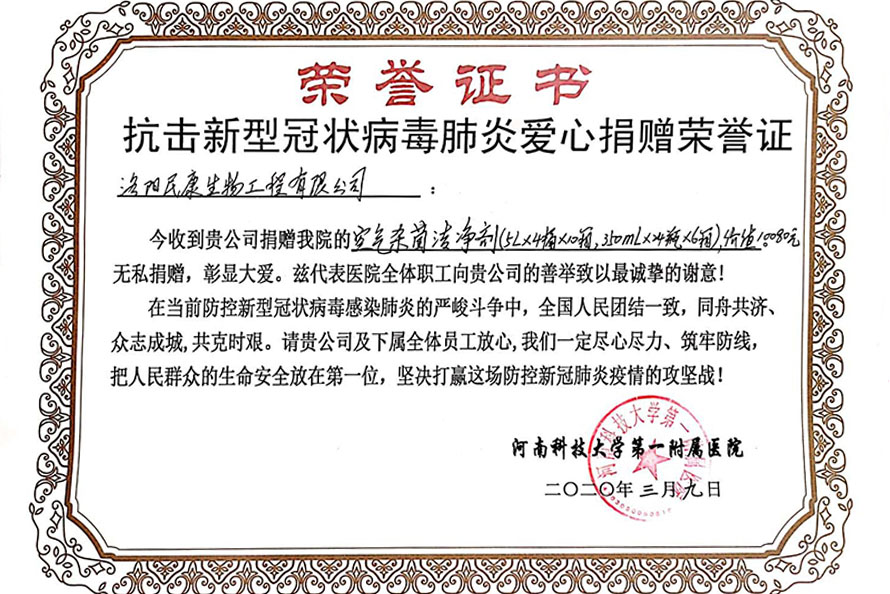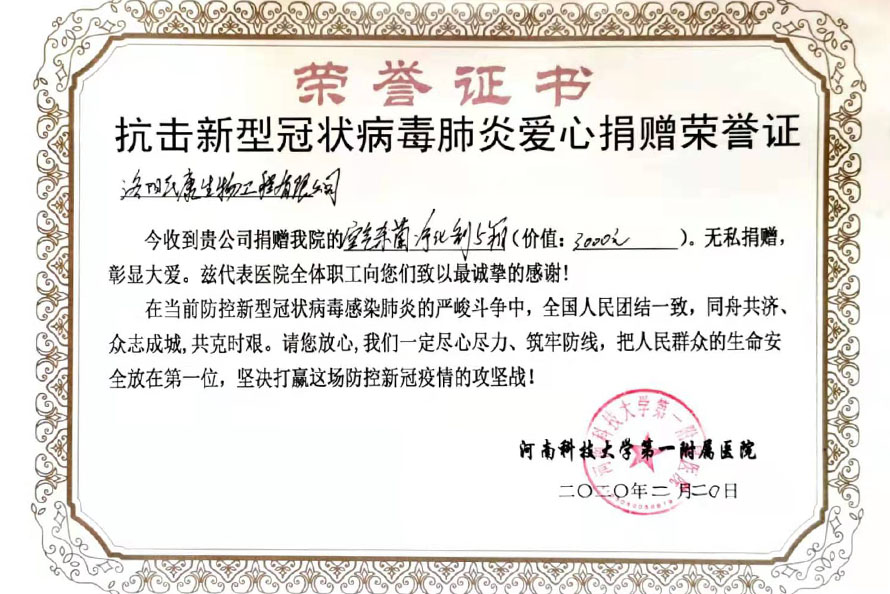 抗擊新冠病毒愛心捐贈(zèng)榮譽(yù)證