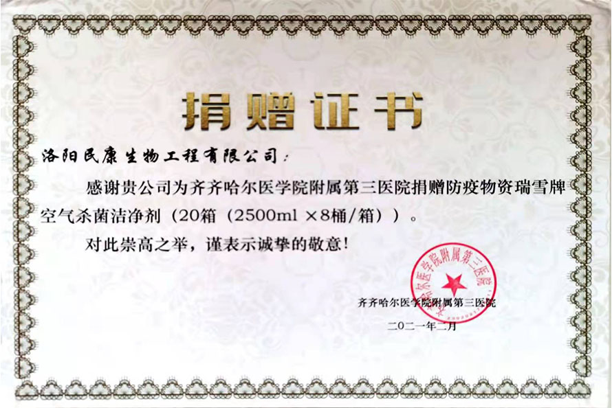 民康為齊齊哈爾醫(yī)院捐贈(zèng)空氣殺菌劑